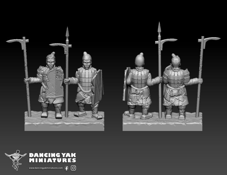 A few months ago I commissioned Warmonger Miniatures’ first fantasy unit, Terracotta Army spearmen, with Dancing Yak Miniatures. The digital sculpting is nearly complete and I hope to have a Kickstarter to get them molded up and cast this August. They’re an alternate take on undead, instead of skeletons the souls of these warriors are bound to terracotta statues by their masters. I’d like to do crossbowmen, calvary, chariots, artillery and maybe some big monsters in the future as well.